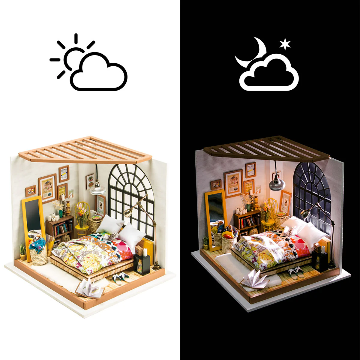 This DIY miniature room model complete with LED lighting will keep you busy for hours as you cut, fold, glue and transform the supplied pieces into delightful keepsake. This is a great project for a grandparent/parent to complete with a child, or the perfect gift for those who love hands-on activities.