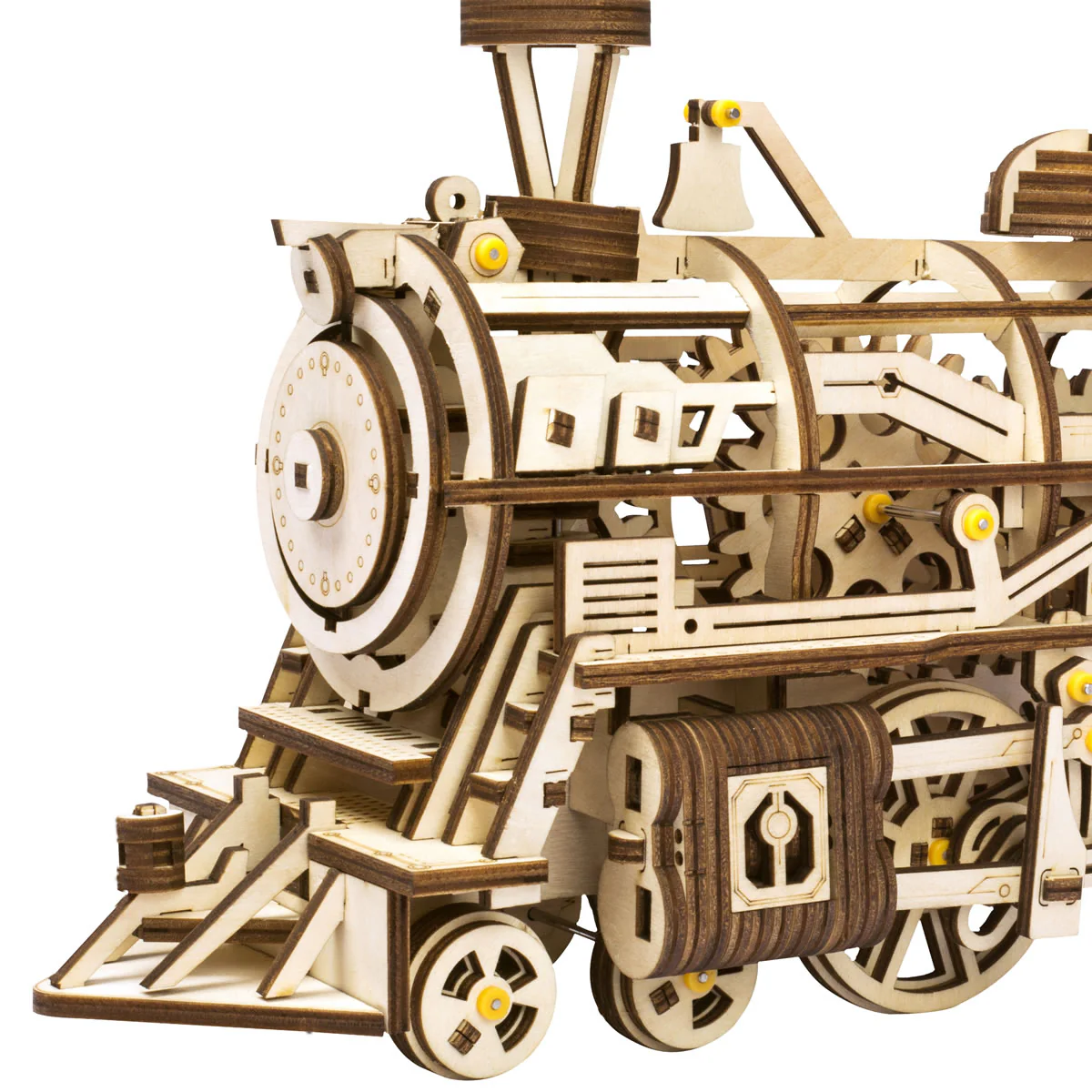 We think it looks cool in a raw finish, but one of the nice things about a kit is you can make it your own, so feel free to personalise as you wish. The Locomotive is made from plywood so you can apply just about anything including paint or lacquer. Our recommendation is to paint prior to assembly as getting a brush into every little section would be really fiddly once it's finished. The moving gears need to be carefully aligned and excess paint may prevent these parts from moving. If necessary, lightly sand your paint on parts that need adjusting.