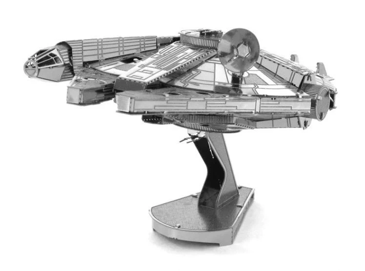 Build your own Star Wars Millennium Falcon model from this amazing METAL EARTH kit. The parts are laser cut from ultra-thin flexible steel sheets. No gluing or soldering is required – just pop out the pieces and connect using tabs and holes.